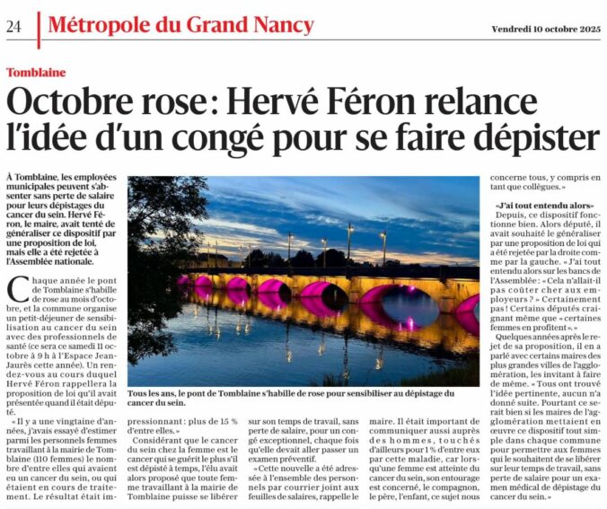 Merci à l’Est Républicain d’avoir relayé cet appel… 10 octobre 2025 / adminmtb Merci à l’Est Républicain d’avoir relayé cet appel…Si ça pouvait être entendu, ce serait vraiment un beau progrès … Actualité Article précédent Une vraie émotion … Article suivant La restauration scolaire à Tomblaine : une démarche qualité.