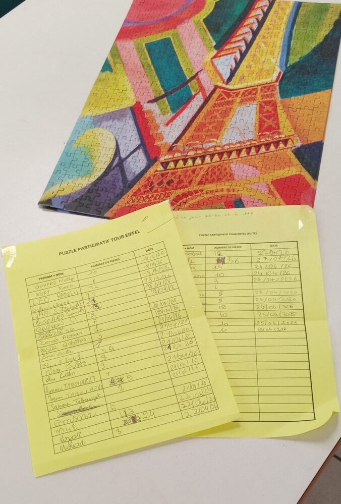 Tout le monde a noté son nom sur la fiche, avec fierté ! Le puzzle sera visible, dès la semaine prochaine, exposé sur un mur de la bibliothèque.