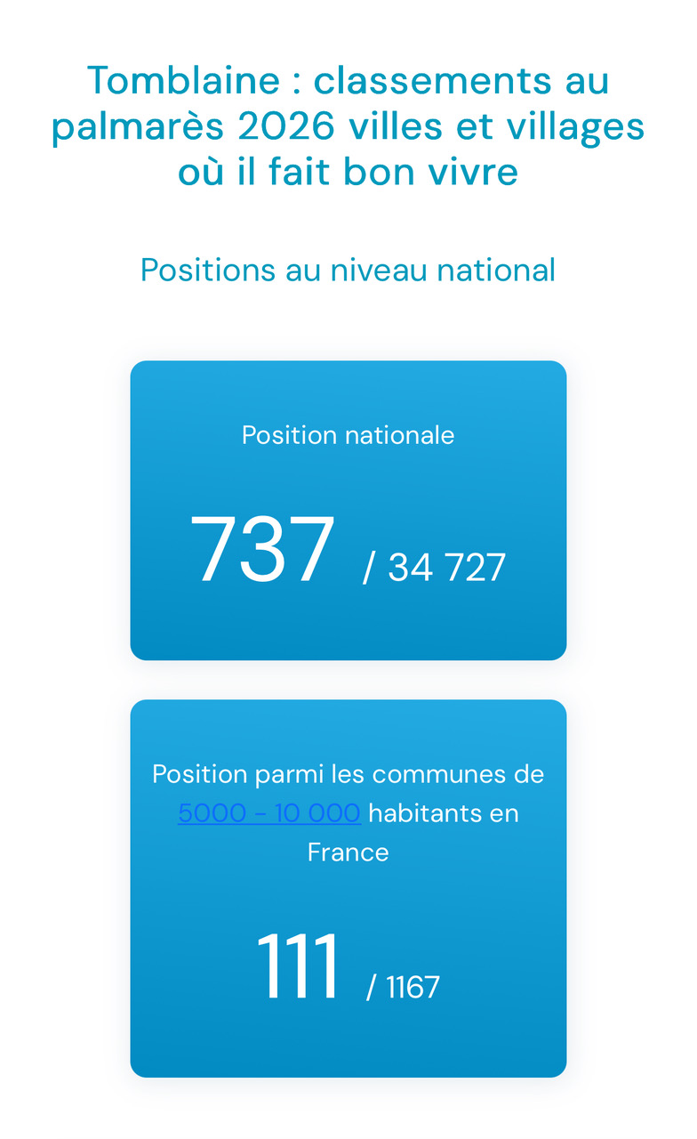 Tomblaine, Ville où il fait bon vivre. Le palmarès annuel des Villes et Villages où il fait bon vivre en France vient d’être publié. Et Tomblaine est, une fois de plus, mise à l’honneur ! Au niveau national, Tomblaine est placée 737ème sur 34 727 Communes  ! Et parmi les villes entre 5 000 et 10 […]